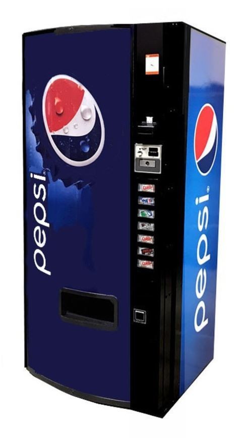 All of our soda machines are credit card capable. These machines offer seven selections choices at a minimum per unit. Our soda machines are branded with popular known beverage companies such as Pepsi and Coca-Cola. Brands and graphics change depending on availability. Size and type vary on the size of the property to the intended parties usage volume needed. Most offer double depth high capacity bottle or can vending capabilities. Newly designed merchandising doors. Large package delivery port. Triple-depth high-capacity can vending. Simple field conversion to different package size vending. Multi-pricing capability. Historical and interval accounting data. DEX and MDB compatible. Factory reconditioned or reburshied to manufacture specifications.